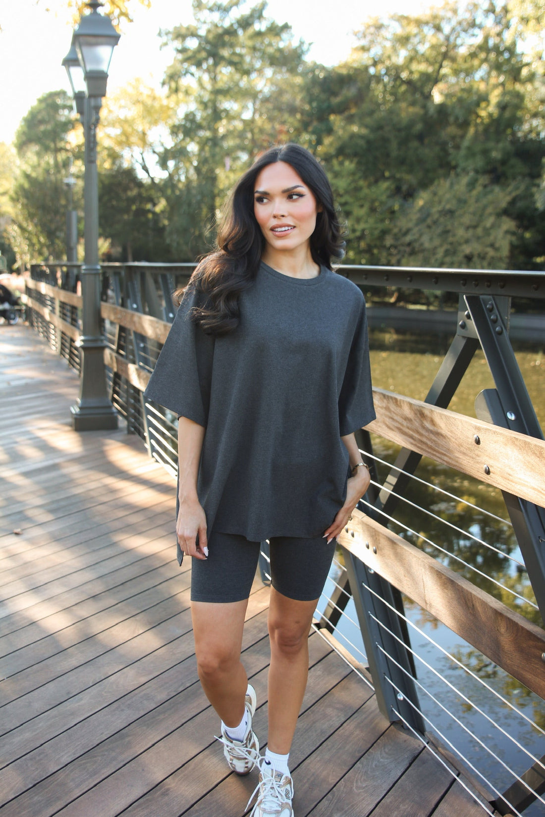 Grey Ribbed Knit Biker Shorts Set
