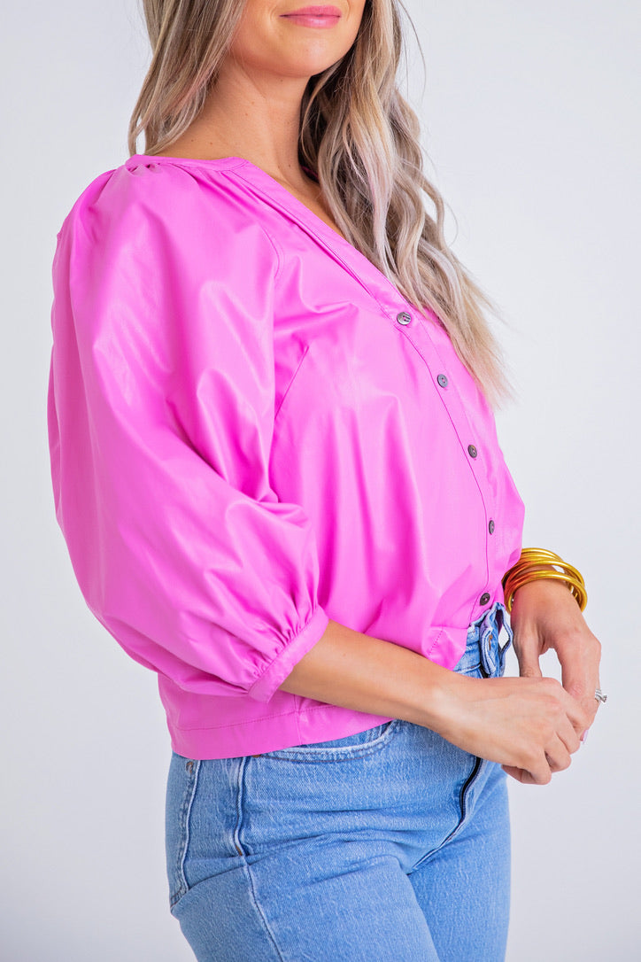 Faux Leather Button Top